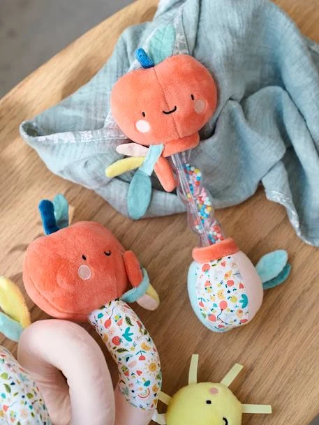 Un joli bâton de pluie qui émerveillera les enfants avec le bruit des petites billes qui s’écoulent quand on le secoue ! Un jeu d’éveil qui fait toujours son petit effet, surtout dans cette adorable version doudou Croque la vie !
