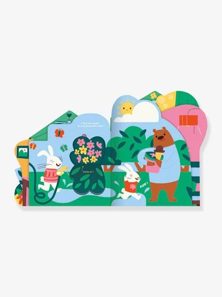 Accompagne petit ours et petit lapin dans leur journée bien remplie ; promène-toi avec eux dans leur maison et découvre 15 odeurs variées : – Gâteau aux fraises – Pêche – Jus d’orange – Bulle au bubble-gum – Colle (odeur de colle Cléopâtre) – Frites – Poulet rôti – Fleurs – Glace au chocolat – Pizza – Banane – Dentifrice à la menthe – Savon – Linge propre – Parfum fleuri
